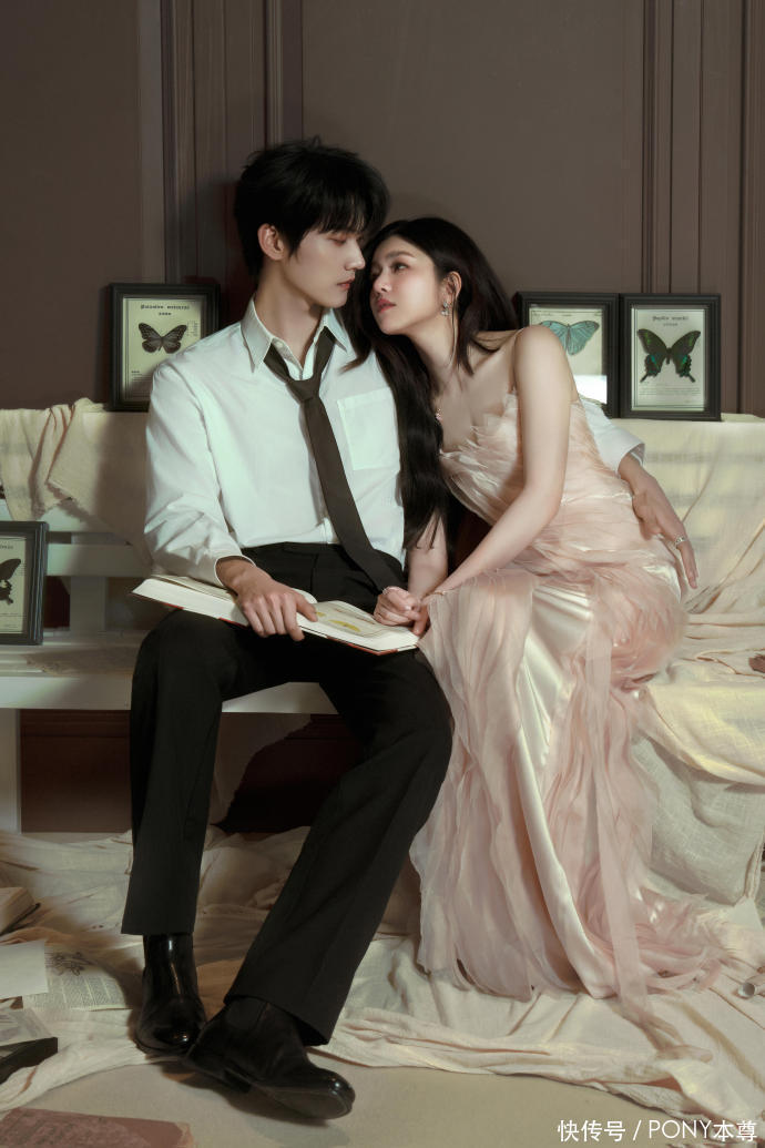 除了粉色长款抹胸长裙,穿搭上,也是尽显少女感!娃娃领上衣搭配中分长发造型,举手投足尽显娇俏感!